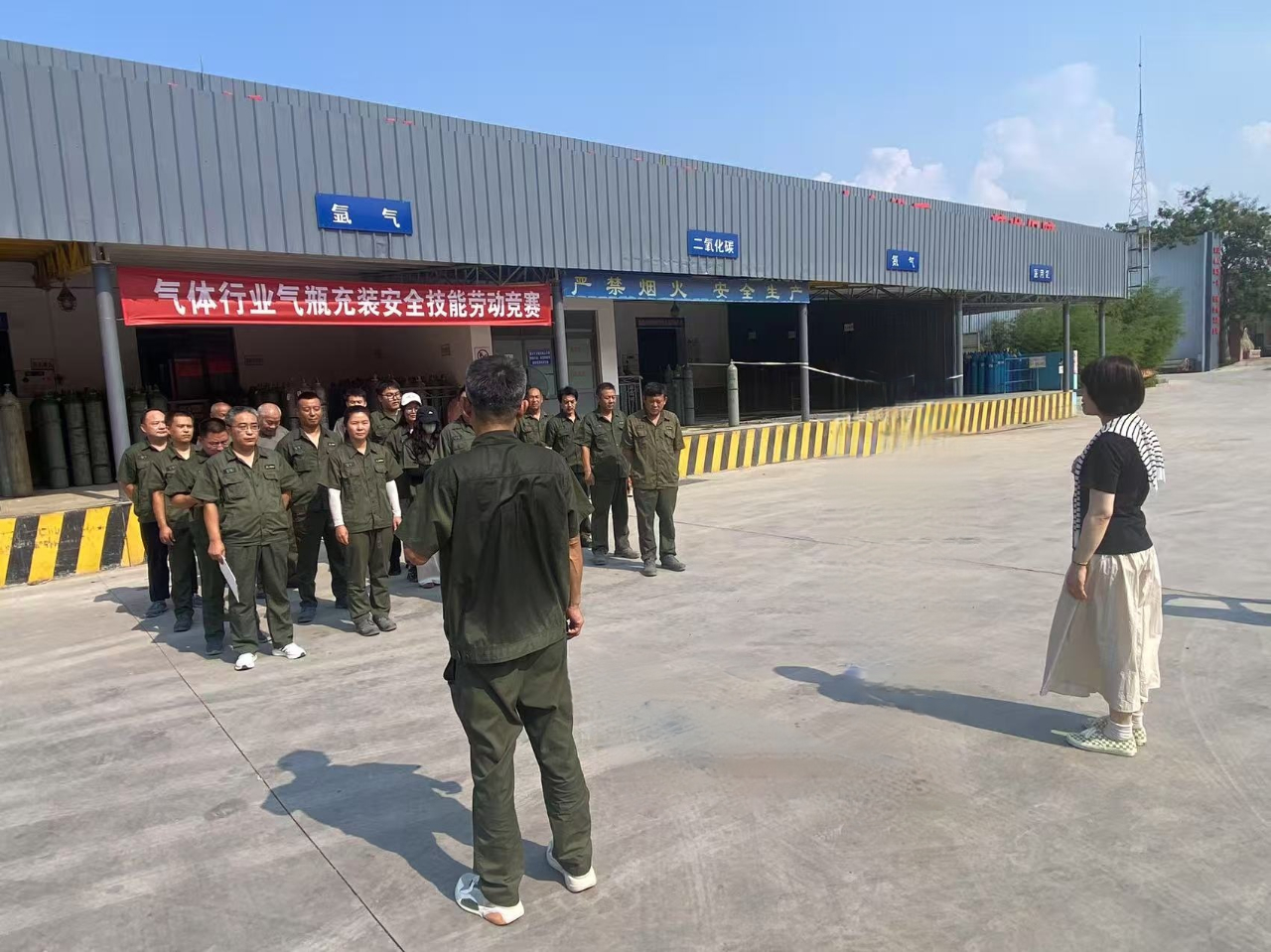 2025年7月28日下午,山东天海气体有限公司在工厂主厂区充装车间,组织了气体行业充装专业气瓶充装劳动技能安全竞赛活动,收效明显。 守牢安全发展底线,提升本质安全水平,助力经济金融安全,共建高水平平安济南。 1、提高气瓶充装从业人员的操作技能和安全意识。 2、规范充装流程,确保符合国家标准(如《气瓶安全技术规程》TSG 23-2021)。增强从业人员的工匠精神,培养高素质技术技能人才。 3、营造“比学赶超”的工作氛围,促进团队协作与技术创新。 1、主办单位:山东天海气体有限公司 2、承办单位:济南市历城区董家街道工会 3、技术支持:济南天海运输有限公司、青岛天亿能源有限公司 竞赛前,工会领导提出明确要求,竞赛中要公平公正公开,保证安全。参赛人员要精神饱满,赛出风格、赛出水平、赛出成绩,预祝取得好的成绩。 通过劳动安全技能竞赛,确实看到了参赛者的热情,以及熟练的专业技能。通过竞赛,各单位找准了差距,下一步将互帮互学,整改不足,不断提升专业水平和操作规程,为安全发展打下坚实的基础。
